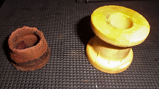 What is included in their V12 30,000 mile perishable service, is anything perishable being removed and in place a new radiator, hoses, drive belts, new plug leads and plugs, thermostats, water pump, new electric fan and fan couplings. This is followed by a full chemical flush of the engine coolant system and all oilways, followed by a full 30,000 mile service to body and engine, with any engine tuning needed to get it to the top notch performance you’d expect. Also the gearbox and differential oils are changed and in our case, gearbox mounting bushes changed, see the picture for what came out and what went back!